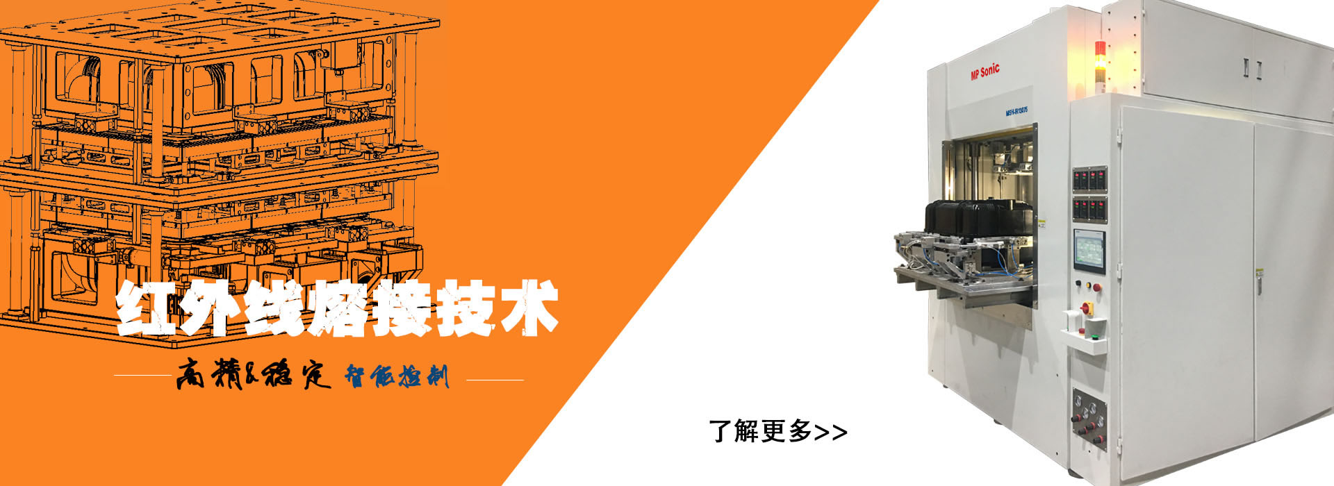 臻博機械 | MP Sonic 致力于焊接和切割工藝技術以及工業自動化技術的開發。我們為客戶設計制造各種焊接和切割的設備與系統,包括超聲波焊接,超聲波切割,振動摩擦焊接,熱板焊接,紅外焊接,旋轉焊接,激光焊接等。我們的技術主要用于熱塑材料產品的后期組裝加工生產。